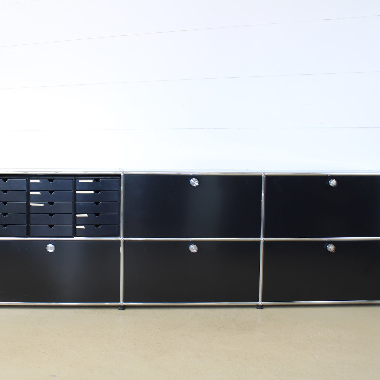 Ja, das ist unsere Kernkompetenz. Wir unterstützen Sie dabei, Ihr USM Haller individuell zu konfigurieren. Ob Sideboard, Lowboard oder Home-Office-Lösung – wir planen nach Ihren Massvorgaben und setzen das Möbel aus unserem Bestand an Original-Gebrauchtteilen für Sie zusammen.
